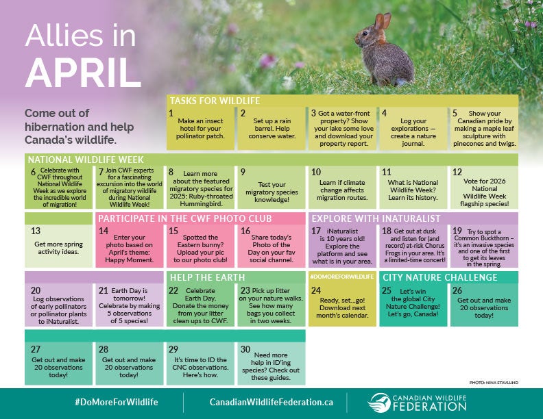 In 1947, Canadian Parliament officially proclaimed the week of April 10 as National Wildlife Week. April 10 is the birthday of the late Jack Miner, a Canadian naturalist known by some as the "father" of North American conservationism. "Wild Goose Jack,” as he was often referred to, was one of the first conservationists to determine the migratory paths of North American birds and is credited with helping to save the iconic Canada Goose from the brink of extinction. While we won’t all save an animal from extinction, we can all have a positive impact on our wildlife and the places they call home when we #DoMoreForWildlife.