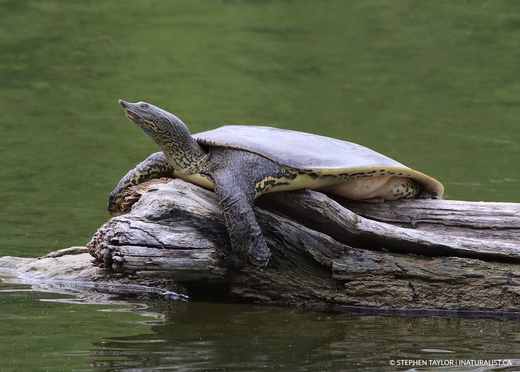 - La tortue molle à épines aime la boue associée à de nombreux rivages d’eau douce dans le sud de l’Ontario. Elles enfouissent souvent leur corps exceptionnellement plat dans la boue et utilisent leur long nez tubulaire comme tuba. Chaque année, au début de l’été, les tortues femelles recherchent des endroits sablonneux ou graveleux pour faire leur nid. Mais ces derniers temps, les sites de nidification se font rares. Les projets de stabilisation des berges et des rivages ont réduit l’habitat de la tortue molle. Ces projets sont réalisés partout, y compris dans les zones urbaines où des mesures d’atténuation de l’érosion empêchent les tortues d’y accéder. Ces mesures comprennent des murs de soutènement en béton, l’enrochement de gros blocs et des gabions. Ce type de stabilisation des berges empêche non seulement les tortues de circuler dans la plupart des cas, mais il peut aussi provoquer des flux d’eau non naturels et modifier la dispersion des sédiments, ce qui risque d’altérer encore plus l’habitat. L’endiguement des berges et d’autres menaces ont placé la tortue molle sur la liste fédérale des espèces en voie de disparition. Mais ça n’a pas à être le cas. Il existe d’autres techniques de stabilisation des berges qui ne nuisent pas aux tortues.