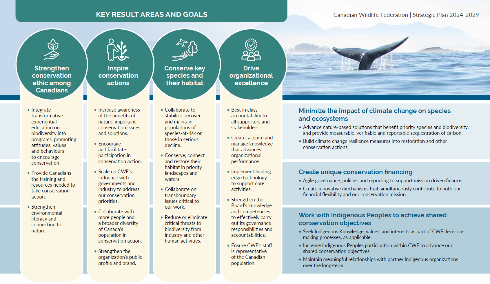 The Canadian Wildlife Federation has embarked on a five-year strategic plan that will provide the guiding focus for efforts to help shape the future of conservation. The seven Key Results Areas in the plan include: