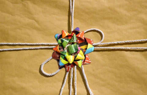 Want to give green, show-stopping gifts? Why not reduce or eliminate wrapping paper altogether? Just tuck away the gift under the tree to keep it hidden until Christmas morning. If you can’t stand the idea of nixing decorations altogether, you can reuse wrapping paper from last year, make big cloth bags that can be reused forever, ask your kids or grandkids to decorate paper with holiday or family scenes and use that as gift wrap, adorn your gift in a pretty tea towel or scarf or even decorate a shoebox. There are plenty of solutions; you just have to get creative!