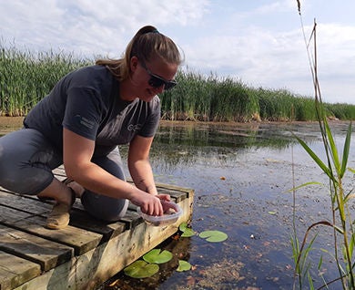 “Over the last nine months I have had the opportunity to visit nine out of 10 Canadian provinces,” said Shannon Anderson, a Canadian Conservation Corps graduate from New Brunswick. “I have climbed my first real mountain. I have touched the Atlantic and the Pacific oceans. I have handed out plants to teachers in Calgary. I have participated in youth service and leadership talks in Toronto. I have chaperoned a youth trip to Northern British Colombia. I have been able to see 25 km across prairie and the largest skies in the world. I have helped create over 11 million walleye and 100,000 splake trout. I have tracked northern pike with a hydrophone. I have taken density of oxygen readings. I have helped film educational videos to raise awareness of aquatic invasive species. I have visited a sharp-tailed grouse lek. I have watched bison roam on some of the last remaining native prairie in the world. I have met people and created invaluable friendships from all over Canada. I have had a lot of fun.”