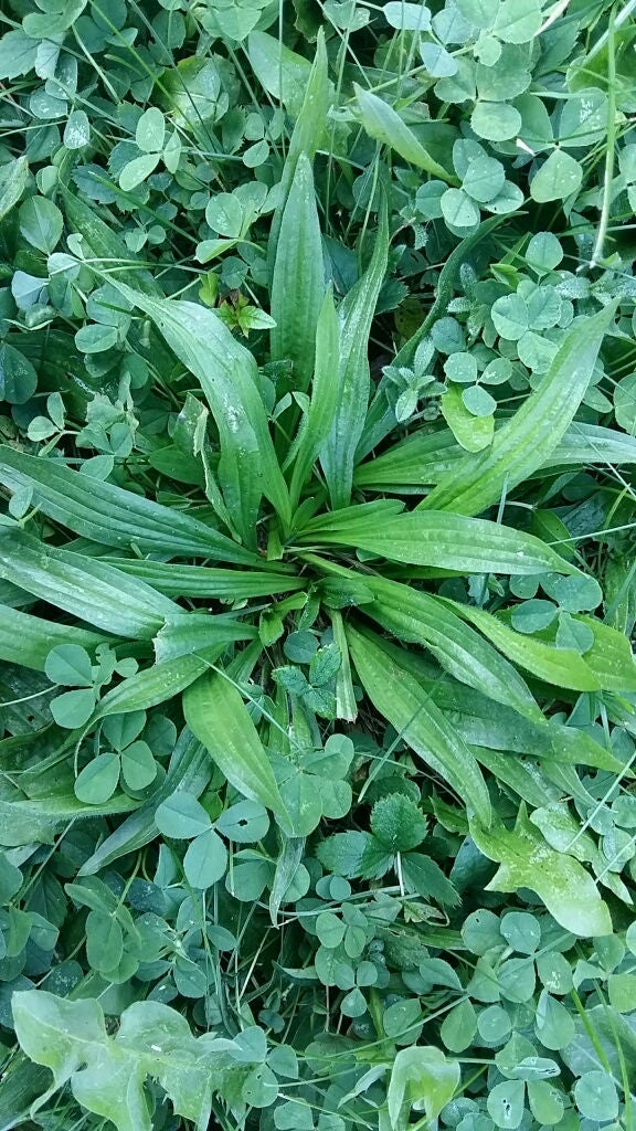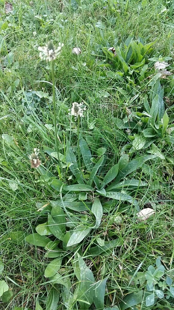 This Plantain is probably the most commonly recognized species of Plantago by gardeners and edible wild plant enthusiasts with Plantago lanceolata (English Plantain, long-leaf Plantain) close in second.