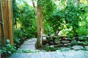 The front garden receives lots of sun and is therefore filled with plants that can handle the heat and don’t require watering. It is in her backyard, however, where she has taken special pride in working with nature. Enchanting pathways through the trees and shrubs are bordered by violets, hostas and hundreds of ferns, creating many layers of foliage — habitat for birds and bugs alike.