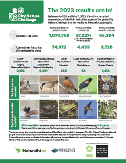 Think globally. Act locally. And do it to help Canada take on the world! That’s the mission for Canadian participants in the 2026 City Nature Challenge, a friendly international competition focused on tracking biodiversity around the world.  All observations become part of an active database of biodiversity used by scientists and organizations around the world. It’s like Pokémon Go but with a real impact on science and nature!