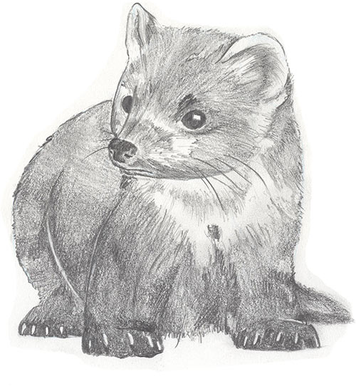 The gestation period for martens is between eight and nine months. Females give birth to between two and six kits in a hollow tree. The young are born blind and will spend the spring and summer with their mother until they are ready to go it alone.