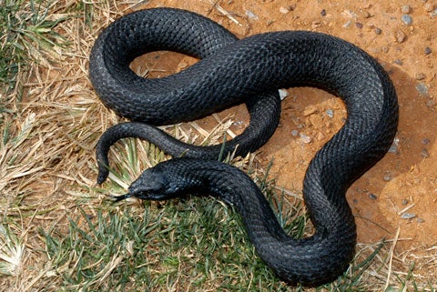 This reptile plays dead by rolling over, sticking out its tongue and even letting a little blood trickle out of its mouth. In a bind, the Hog-nosed Snake releases fluid from its bottom that smells like a dead animal.