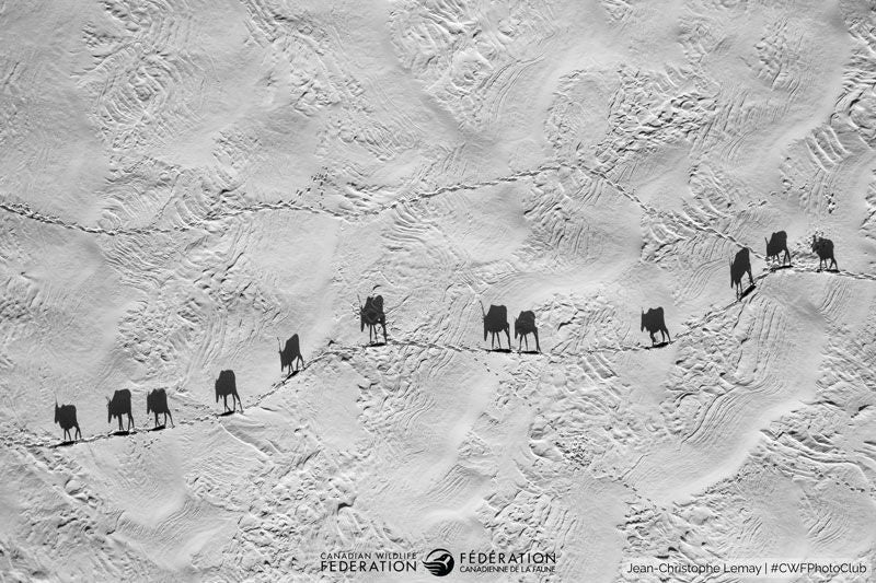About 100 km from Radisson in northern Quebec, Jean-Christophe Lemay spent days tracking caribou with little luck. The herd shifted locations nearly daily, and on this afternoon, the caribou had wandered far out onto a frozen lake, too distant for a handheld shot. With a little trepidation, Lemay decided to launch his drone above the caribou to see their reaction. To his surprise, the caribou paid no attention. From above, he captured their silent march across a landscape sculpted by wind and extreme cold, where temperatures often plummeted to -40 C.