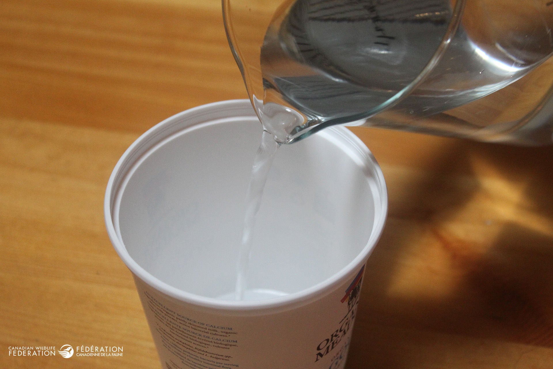 Pour water in between the two containers