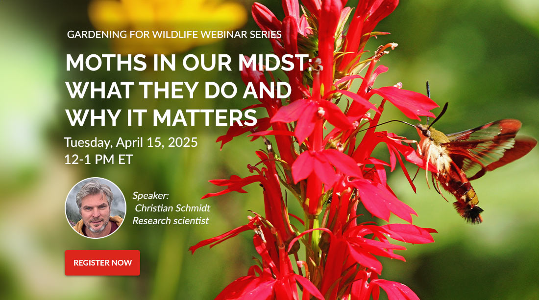 Join the Canadian Wildlife Federation on Tuesday, April 15 at 12:00 p.m. ET to learn about some of Canada’s moths (and butterflies, too!). Our special guest, Christian Schmidt, Ph.D., a research scientist, will take us into the world of moth biology, how they live and profile some Canadian species. Christian will also share ways we can help these remarkable wild neighbours in our own outdoor spaces. We hope you can join us!