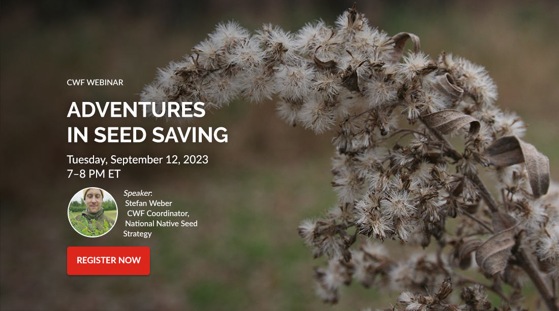 Join CWF Tuesday, September 12 at 7:00 p.m. ET for tips on using seeds at home and in restoration projects and discover a new and much-needed seed project in Canada. In this webinar our special guest, plant ecologist Stefan Weber, will share easy tips for collecting, storing and germinating seeds of native grasses and wildflowers, as well as some herbs and veggies. He will also speak about the diversity of plants in Canada and efforts to save them via the National Native Seed Strategy project that CWF is leading. Stefan will touch on issues related to seed-sourcing and using local ecosystems to guide your garden choices. We hope to see you there!