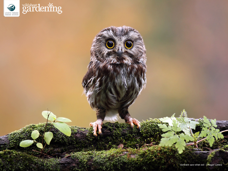 Download this season’s wallpaper to brighten your desktop! This little northern saw-whet owl can be found from coast to coast in Canada. Attract them to your garden with evergreen trees. Photo by Megan Lorenz, CWF Photo Club.