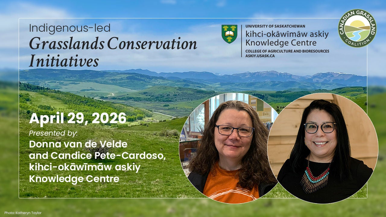 This webinar will showcase the kihci okāwīmāw askiy Knowledge Centre’s partnerships in grasslands conservation. The Centre works with like minded organizations, offering Indigenous perspectives that honour Mother Earth. Our goal is to ensure Indigenous voices are meaningfully and respectfully represented in grassland conservation efforts.