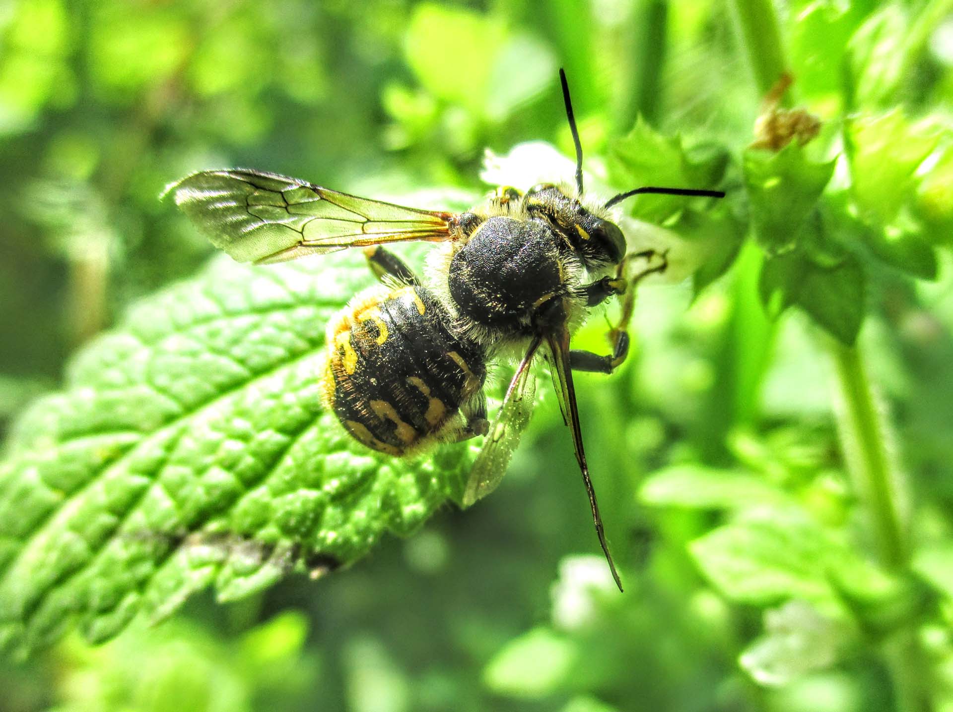 Medium-sized bees (eight to 17 mm), Anthidium are robust, black-and-yellow bees. They are not very common in Canada, only five species present, of which two were recently introduced from Europe (in the last decades). Unlike most bee species, males are bigger than females. They can be observed hovering in front of flowers.