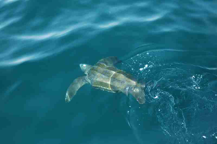 The leatherback sea turtle is the world’s largest reptile. It is significantly larger than all other marine turtles. The leatherback’s body is teardrop-shaped, tapering at the rear to a blunt point. The carapace, or upper shell, can grow to more than 2 m in length, and the turtle can weigh more than 900 kg.