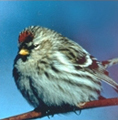 Redpolls are a member of the winter finches, a group of finches which breed in northern Canada, and so are generally only seen in southern, more populated areas during the winter. This group includes the redpolls, crossbills, siskins, and evening and pine grosbeaks. The winter finches are associated with "irruptions" or periodic invasions of areas south of their usual wintering grounds. These irruptions are thought to be caused by a season of good breeding (population growth) followed by a season of winter food shortages which forces the birds further south in search of food. Common redpolls tend to exhibit this irruptive behaviour on a fairly regular basis (generally every second year) in association with the production of catkins on birch and alder. When there is a poor crop of catkins in their wintering grounds redpolls head further south in great numbers. To survive the extreme cold of their normal wintering areas, the common redpoll has an interesting adaptation for feeding. A sac (diverticula) inside their throats allows them to store seeds temporarily. During times of cold weather, common redpolls will knock seeds to the ground, swoop down to pick them up, quickly storing the seeds in their throat sac, and escape to a more sheltered spot. This gives them the freedom to shell and eat their findings in greater warmth and safety. To attract redpolls to your garden, try planting birch trees to provide them with their favourite food. These friendly little birds also feed on alder, willow, elm, pine, and some berries. They will appear at feeders mid-winter in flocks with siskins and goldfinches. Fill feeders with niger or sunflower seeds and they will happily feed and chatter away. |