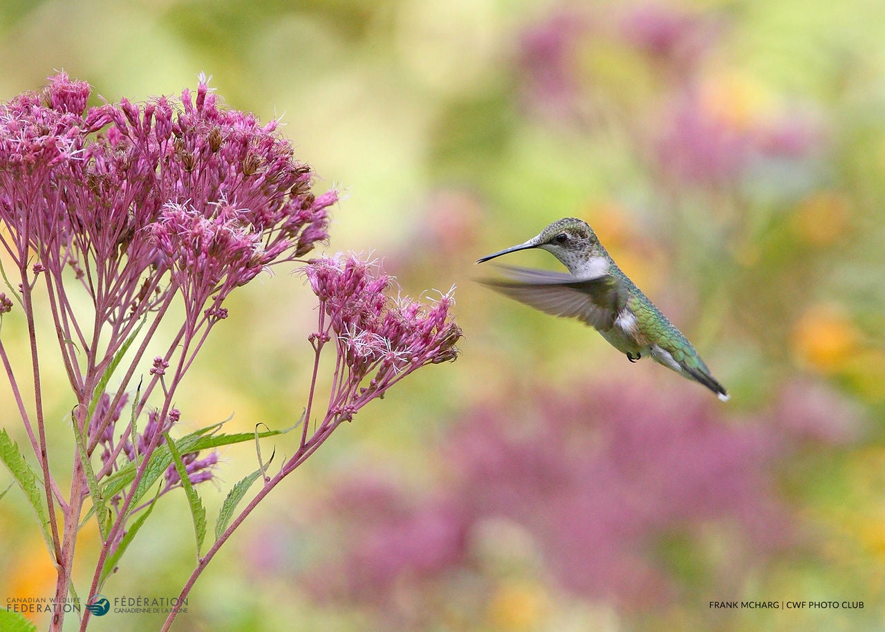 There are five species of hummingbird found in Canada. The ruby-throated hummingbird is the most widespread, found from Alberta east to Nova Scotia. The calliope hummingbird is the tiniest of the five, and is found in central interior British Columbia and southwestern Alberta. Anna’s hummingbird can be found in parts of southern British Columbia and Vancouver Island, while the black-chinned hummingbird can make its way up the interior of southern British Columbia. The rufous hummingbird, considered to have the longest known avian migration, has a slightly wider distribution. It can be found in southwestern Yukon, most of British Columbia and southwestern Alberta.