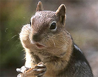 Chipmunks are members of the squirrel family and are often mistaken for striped ground squirrels. However, chipmunks are much smaller, bear facial markings and have five blackish stripes on their backs, including a distinct central line that extends forward onto their heads. Ground squirrels have no markings on their heads. Chipmunks also have longer faces, short, rounded ears, and large internal cheek pouches.