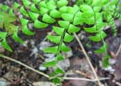 - Appearance: 30–60 cm. Dark reddish-brown stems, pale green leaves that are twice-divided. Sub-leaflets have little notches on the upper side. Spore clusters form along the edge of the upper margin of sub-leaflets. The overall plant has a circular shape and delicate appearance. Spreads slowly.