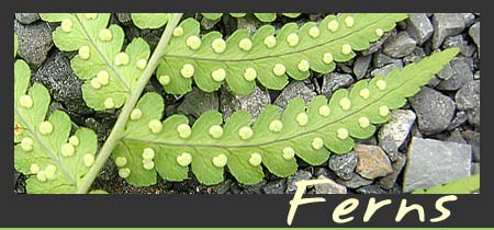 - Appearance: 30–50 cm. Leaves start upright and gradually relax and lower themselves to the ground as summer progresses. Leaves are once-divided, with leaflets having a spur or lip near the base pointing upwards. Spore clusters of reddish-brown dots are on undersides of leaves in rows of two or more. Evergreen.