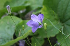 Campanulas are pretty easy to care for once established. At CWF they grow at the front of our shade garden among the large stones that border it. There they enjoy light shade and rich soil. We also have a clump growing in full sun in our Hummingbird Bed. While in both areas the plants are healthy and bloom in profusion, the harebells that get more sun are more upright, probably because of the extra light. Harebells can tolerate a variety of soils and so may also work well in rock gardens and on slopes.