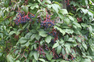 There are many vines native to Canada and, despite their shared habit of climbing up and gaining support from objects, they vary greatly in shape, texture, colour and other characteristics. You can find vines in many different plant families. Virginia creeper, a member of the grape family, is commonly seen around its native region of Ontario and Quebec, in woods and gardens, growing up trees and buildings as well as across areas as a ground cover.