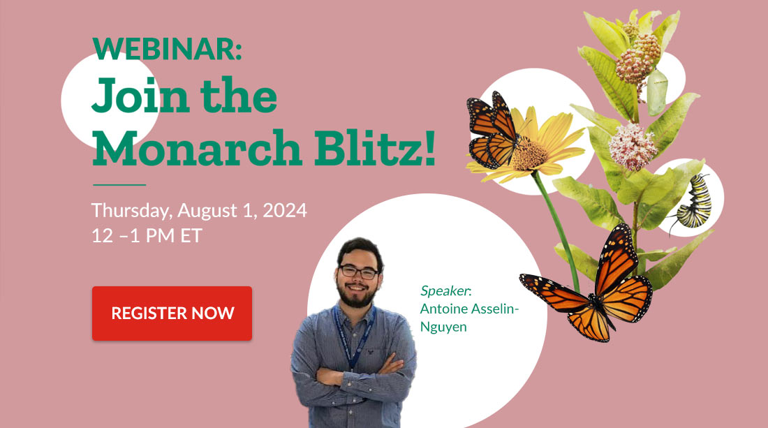 | Details: | Join us on August 1st, 2024, at noon Eastern Time for an engaging webinar on the International Monarch Monitoring Blitz. The Canadian Wildlife Federation (CWF) and the Commission for Environmental Cooperation will shed light on this incredible tri-national initiative aimed at protecting the endangered monarch butterfly. Discover how you can participate in this vital effort through iNaturalist in Canada, learn about the latest conservation strategies, and find out how you can make a difference in saving this iconic species. Whether you join us live or watch the recording later, this webinar offers valuable insights into the collaborative efforts to conserve monarch butterflies. |