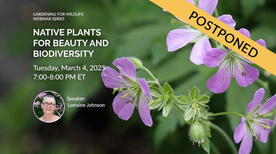 | Details: | ***Thank you for registering for Native Plants for Beauty and Biodiversity with special guest Lorraine Johnson. Unfortunately, due to unforeseen circumstances, this webinar must be postponed until further notice. We are very sorry for any inconvenience. Once we know if and when it can be rescheduled, we will send you an email with all the details. Please note that we have other webinars coming up that may interest you**** |
