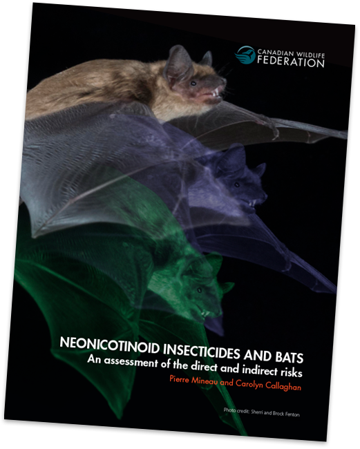 The purpose of the review by Pierre Mineau and CWF’s Carolyn Callaghan is to examine the various lines of evidence that new systemic insecticides may be putting Canadian bats at risk. Specifically, this review investigates the risk and magnitude of neonicotinoid exposure for bats foraging in agricultural landscapes, and assess the resulting direct risk to bats by constructing a formal risk assessment following an exhaustive review of what is known currently about the mammalian toxicology of neonics. The indirect effects of neonicotinoid insecticides in bats will also be explored by reviewing the case for insect declines and the probable involvement of neonicotinoid insecticides in these declines.
