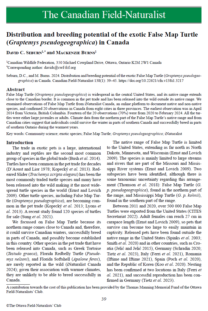 Distribution and breeding potential of the exotic False Map Turtle (Graptemys pseudogeographica) in Canada