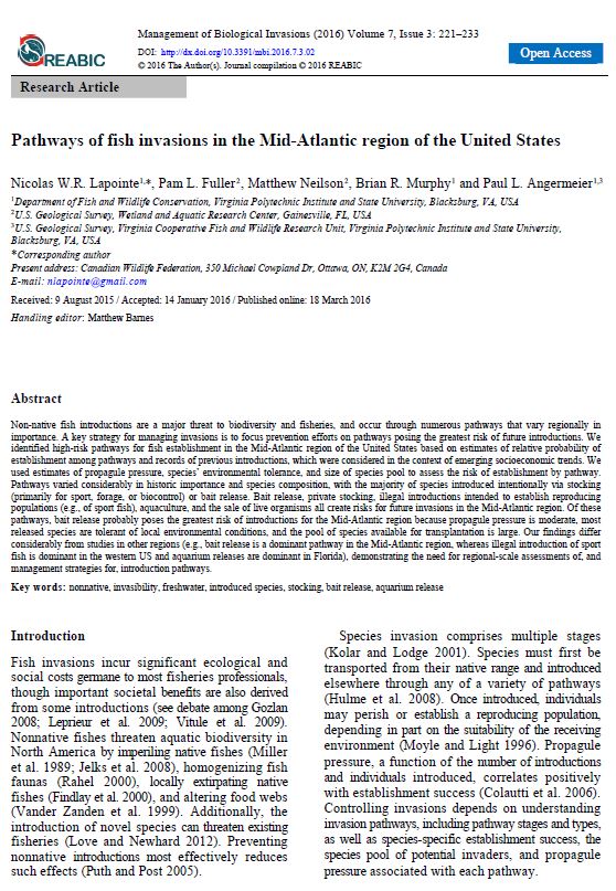Pathways of fish invasions in the Mid-Atlantic region of the United States