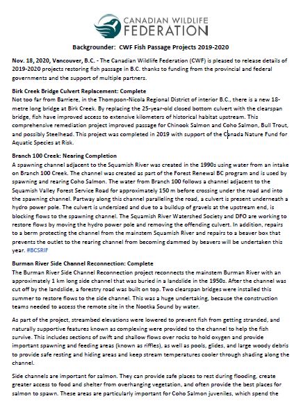 Backgrounder: CWF Fish Passage Projects 2019-2020