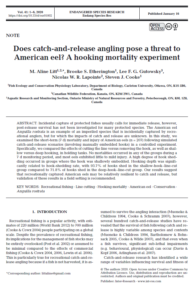 Does catch-and-release angling pose a threat to American eel? A hooking mortality experiment