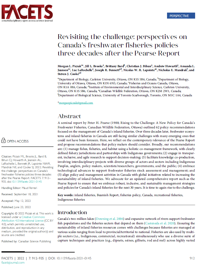 Revisiting the challenge: perspectives on Canada’s freshwater fisheries policies three decades after the Pearse Report