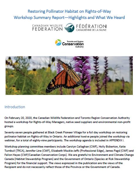 On February 20, 2020, the Canadian Wildlife Federation and Toronto Region Conservation Authority hosted a workshop for Rights-of-Way Managers, native seed suppliers and environmental non-profit groups.