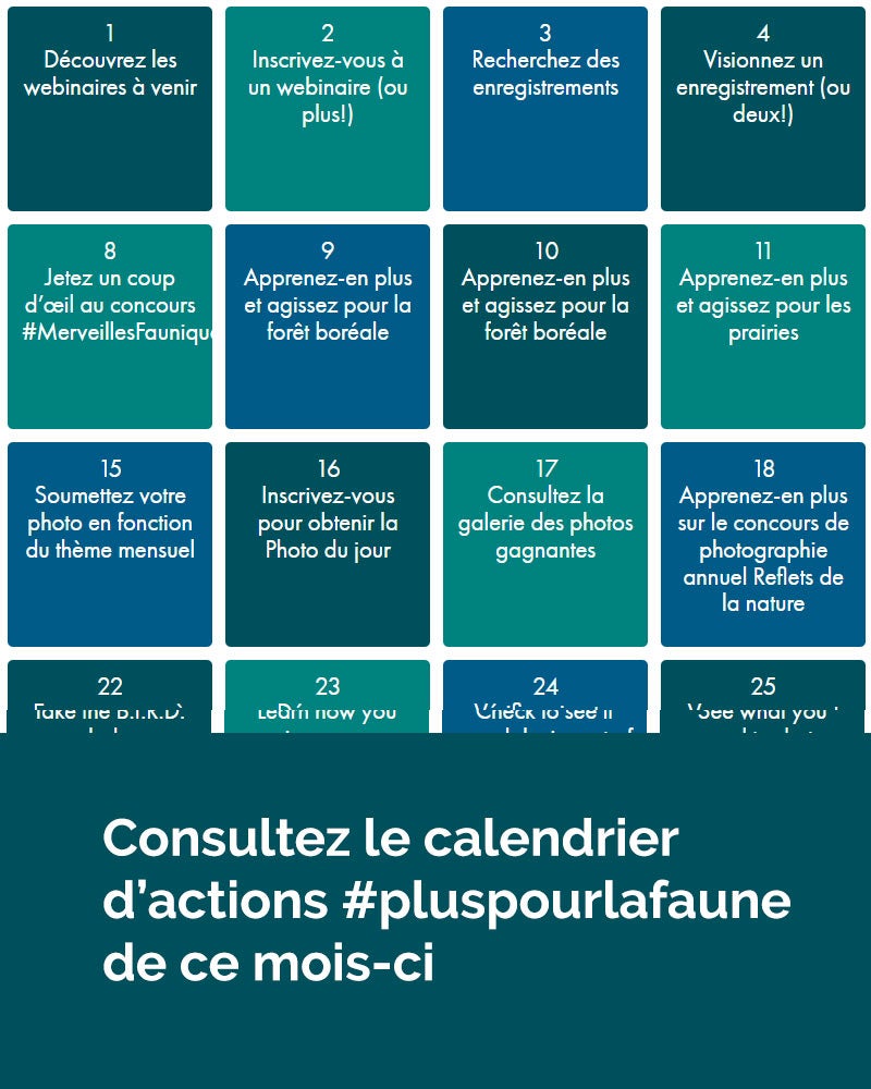 Ce calendrier soutiendra nos actions pour la faune du Canada tout au long de l’année.