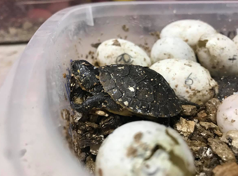 • Chaque été, des œufs de tortues sont collectés et placés en incubateur dans le but d’accroître les populations sauvages.