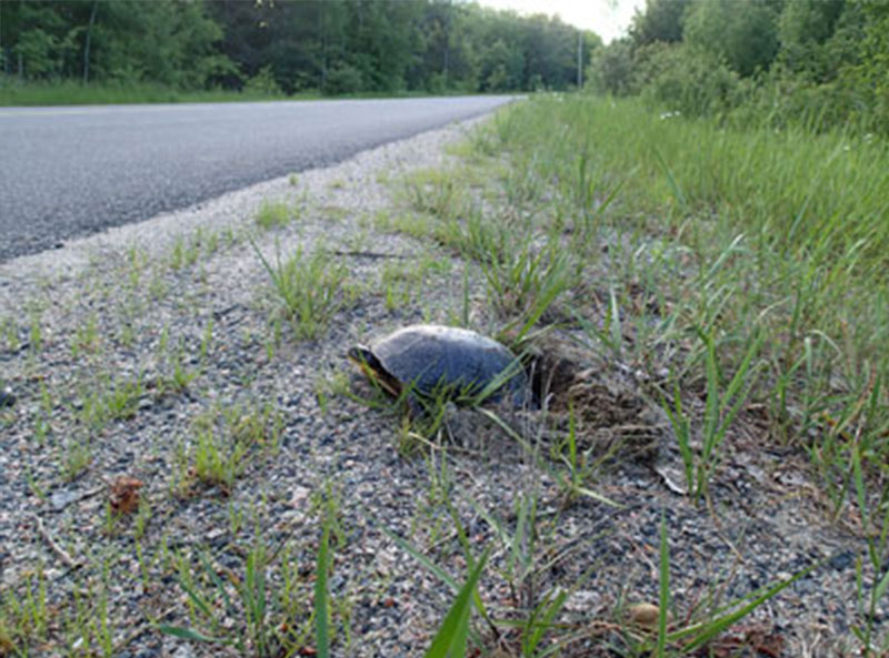 • Si vous trouvez une tortue sur la chaussée, et que c’est sécuritaire pour vous de le faire, donnez-lui un coup de pouce. Assurez-vous de la déplacer dans le même sens qu’elle se dirigeait. Ne l’amenez pas près d’une source d’eau. Elle pourrait être en train de se rendre à un endroit pour pondre ses œufs!