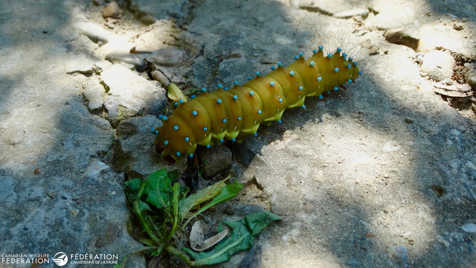 Que dire de plus? C’est l’une des espèces de chenilles les plus emblématiques au Canada. Avec ses bandes jaunes, blanches et noires, cette chenille difficile à manquer est facile à identifier et à protéger. Ces chenilles dodues dotées d’antennes noires sur la tête peuvent atteindre une longueur de deux pouces (5 cm).