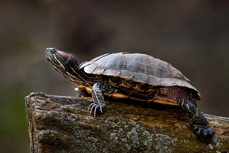 La tortue musquée a une carapace étroite et très voûtée. Cette tortue au corps et à la carapace de couleur brunâtre a habituellement deux rayures sur les côtés de la tête, une au-dessus et une au-dessous de l’œil. Si elle est dérangée, elle émet une odeur de musc, semblable à celle de la mouffette.