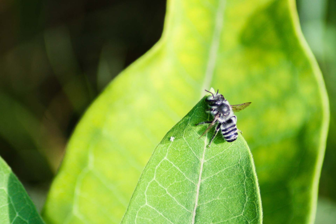 Noir et jaune, les abeilles de la famille des Anthidium sont robustes et de taille moyenne (de 8 à 17 mm). Elles ne sont pas très communes au Canada avec seulement cinq espèces et du nombre, deux ont récemment été introduites d’Europe (dans les dernières décennies). Contrairement à la plupart des espèces d’abeilles, les mâles sont plus gros que les femelles. Ils peuvent être observés en vol stationnaire devant les fleurs.