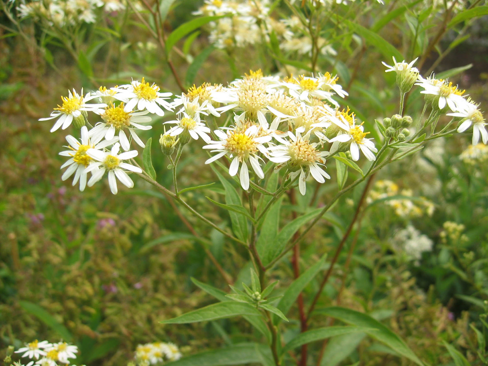 Eutrochium maculatum, anciennement appelé Eupatorium maculatum (eupatoire maculée) : peut avoir des taches pourpres sur sa tige.