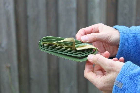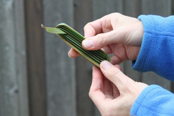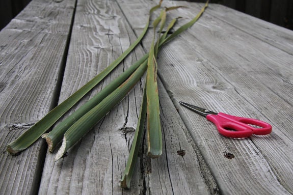 Coupez quelques feuilles de quenouille à la plus basse hauteur qu’il vous est possible de les couper sans danger. Il est utile d’avoir un peu de la partie blanche qui se trouve près du pied.